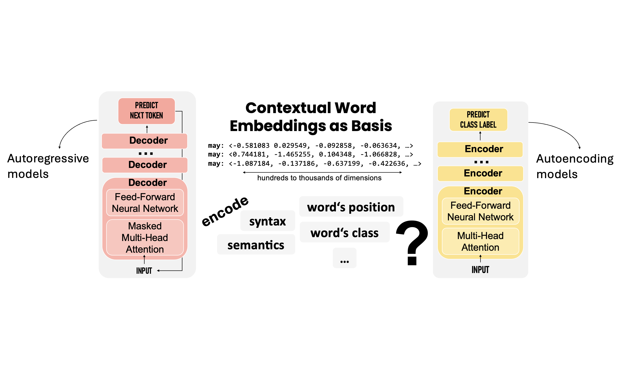 Which linguistic properties are encoded in embedding vectors in different model's layers?